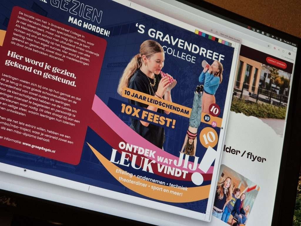 Onze drukwerkconcepten bieden echte waarde voor de lezer, met subtiele reclame voor jullie school. Of het nu gaat om hippe formaten voor de kinderen of zakelijke folders voor ouders, wij zorgen voor materialen die eruit springen.